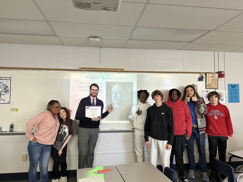 "I am nominating Mr. Wood because he has made class a fun experience this year. His lessons are always entertaining, and you can really tell he loves to teach. He always does his best to make lessons fun and immersive, and he is always encouraging his students to think deeper about subjects rather than take them at a surface level. He is a great teacher and Valley Park is lucky to have him."